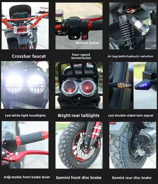Built with a durable aluminum alloy frame and bulky 120/90-10 wheels, it offers unmatched stability and control on UAE city roads. The 72V 20AH integrated battery powers your journey with a top speed of 30–50 km/h, giving you the perfect balance of power and endurance for everyday use. With 3-speed gears and disc brakes, you’ll enjoy smooth acceleration, reliable stopping, and a safe, comfortable ride every time.