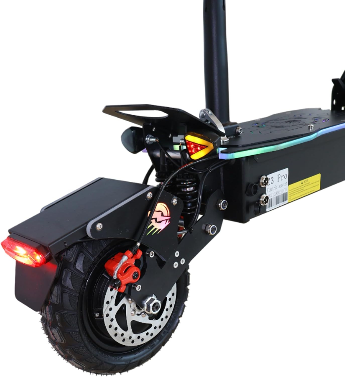 The CHENXIAN Z3 Pro Electric Scooter features a powerful 2200W motor and a 48V 13Ah battery, delivering a 35-45 km range and a top speed of 70 km/h. Equipped with a 4-suspension system, LED running deck lights, brake lights, and an LCD display, it ensures a smooth, safe, and stylish ride—ideal for Dubai’s urban streets.