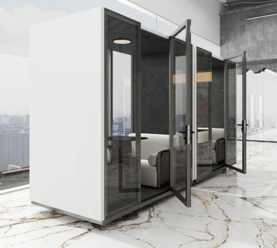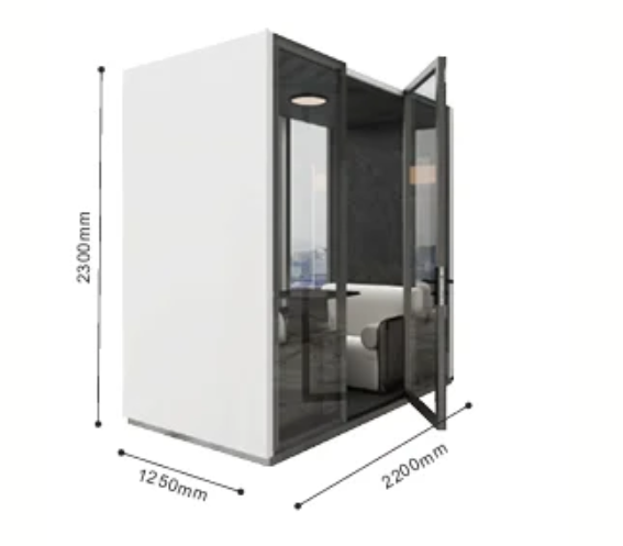 Constructed with precision laser-cut panels and high-performance acoustic materials, it ensures clear communication and total privacy. Inside, the ergonomic layout, integrated workstation, and silent ventilation system create a comfortable setting for extended use. The intuitive touchscreen control panel lets you easily adjust lighting, temperature, and sound settings, while built-in power outlets and smart storage add everyday convenience.