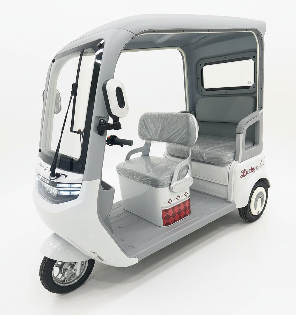Experience eco-friendly mobility with our Electric Rickshaw Passenger Tricycle, a zero-emission, zero-noise transport solution built for efficiency and comfort. Designed for the UAE’s modern needs, this 3-seater e-rickshaw is perfect for guest transport in government offices, theme parks, food factories, clubs, villas, hotels, and touristic venues. It’s equally ideal for indoor transportation, event logistics, or personal use—offering smooth, quiet, and sustainable rides with minimal maintenance.