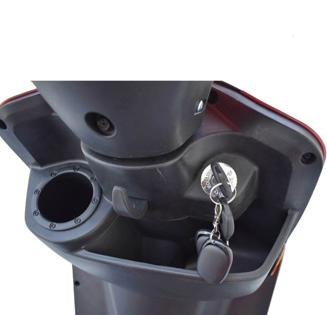 Features: Common features include a rear basket, under-seat storage, a passenger seat, and an alarm system.