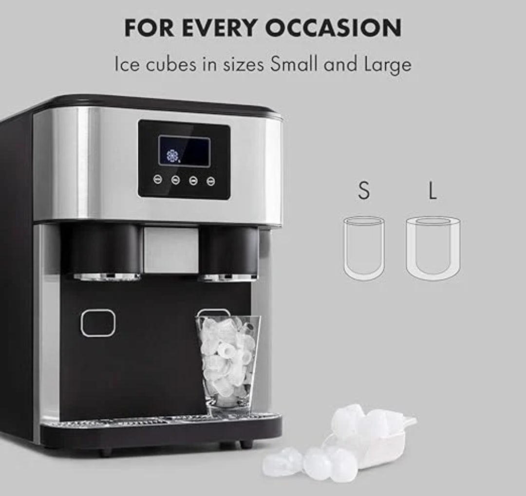 Ice Maker, 3-in-1: Ice Cubes, Crushed Ice, Cold Water, 15-18kg/24h, LCD Display, 1.8L Tank