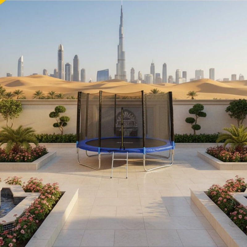 Bring endless outdoor fun to your home with the Knight Shot 10ft Outdoor Round Trampoline — designed for safety, durability, and family enjoyment. Built with a heavy-duty galvanized steel frame, UV-protected mat, and secure safety net enclosure, it’s perfect for year-round use in UAE weather. Ideal for villas, gardens, schools, and community spaces — let the jumping fun begin!