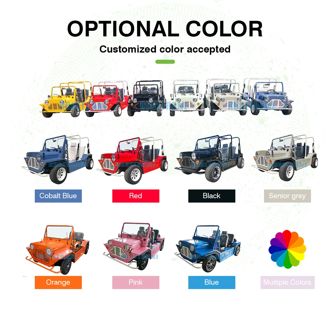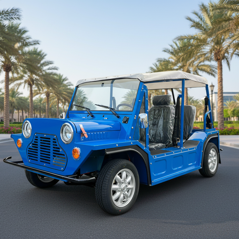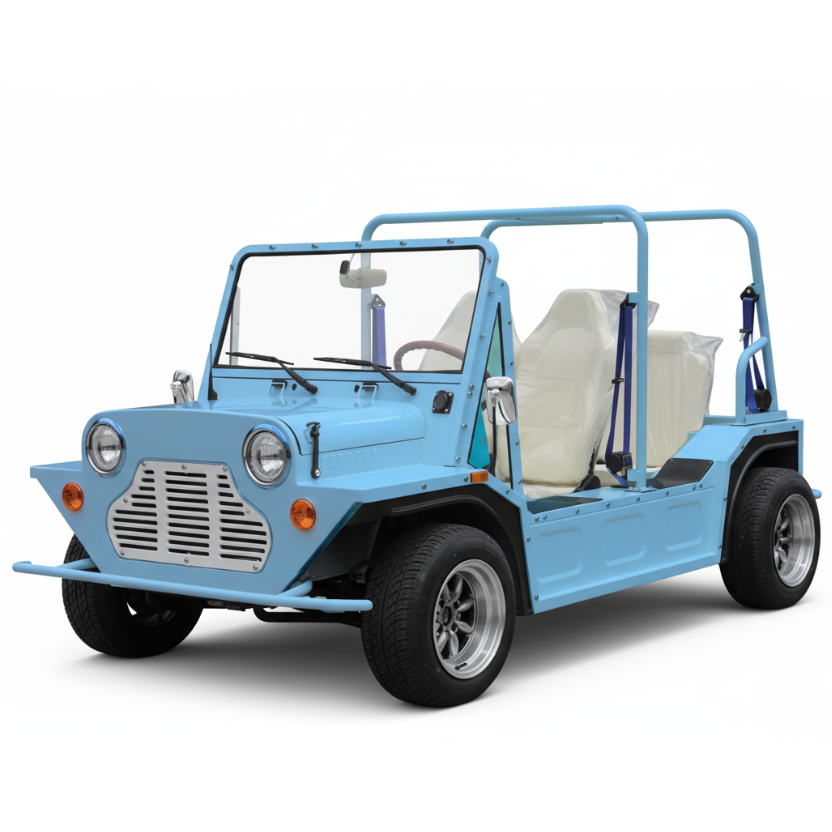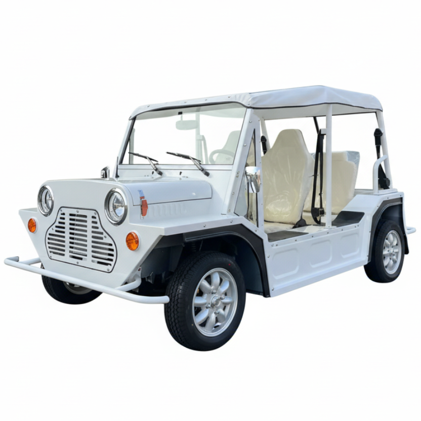 Experience the Full Aluminum Alloy EEC Mini Moke Electric Sightseeing Buggy – a premium 4-seater that blends modern performance with luxury vintage charm. Its lightweight yet durable aluminum alloy body, 96V lithium battery, and 150km range make it perfect for golf, resorts, or cruising your neighborhood. With a top speed of 70km/h, every weekend ride becomes a stylish adventure in this iconic Mini Moke design