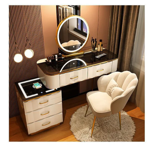 Enhance your bedroom or vanity space with this Advanced Solid Wood Smart Dressing Table Set, designed for modern UAE homes, villas, and hotels. Featuring a smart mirror, wireless charging, and ample storage, it’s the perfect blend of elegance and technology. Ideal as a thoughtful gift for her on a special day, this modern makeup organizer adds luxury, function, and beauty to any space — making every moment unforgettable.