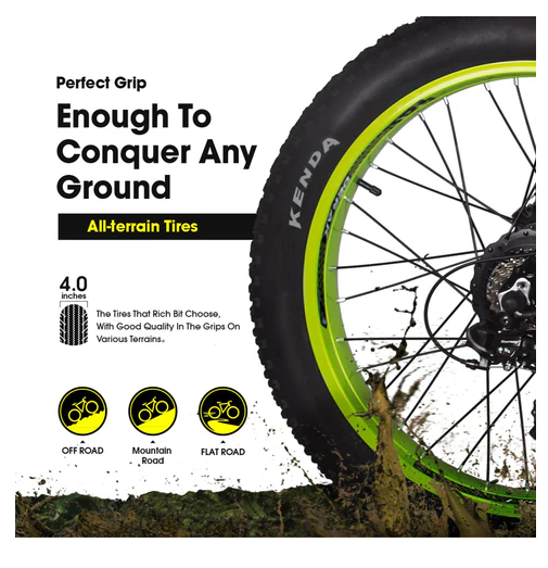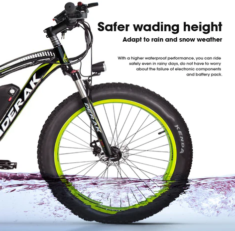 دراجة Pro x-12 Tires الكهربائية مقاس 26 بوصة هي دراجة كهربائية متعددة الاستخدامات يمكن ركوبها على الثلج أو الجبال أو الشاطئ.