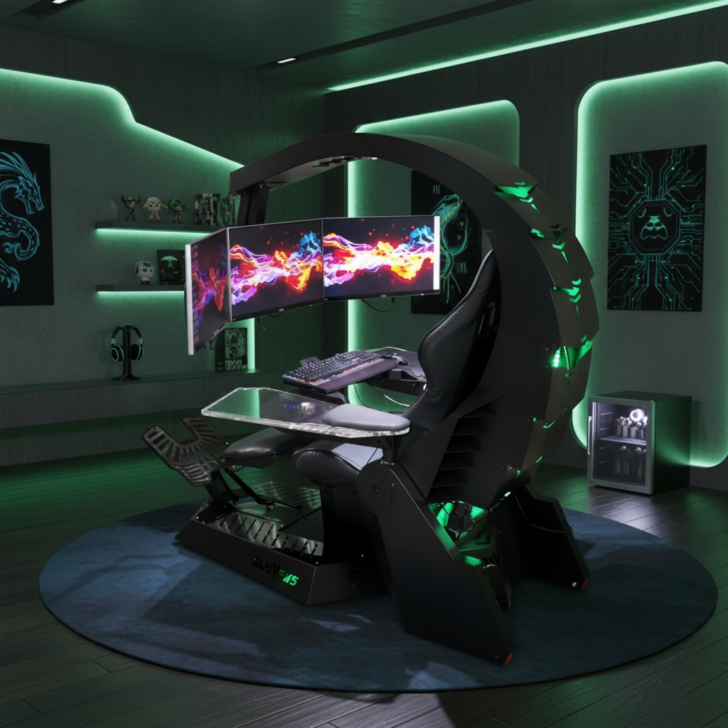 Introducing the Reclining Zero Gravity Computer Workstation, a groundbreaking innovation in high-end ergonomic design for gaming and professional environments. Engineered for maximum comfort, precision, and performance, this advanced workstation brings together functionality and luxury to elevate your experience—whether you’re gaming, designing, coding, or trading. Built on a durable steel frame with electric recline, integrated massage and heating functions, and immersive RGB lighting, it transforms your workspace into a personalized command center.