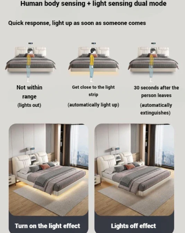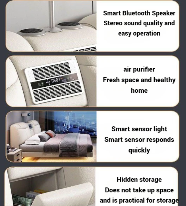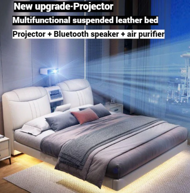 Experience the future of comfort and style with this Modern Smart Upholstery Leather Bed, crafted for the ultimate relaxation and luxury in your bedroom. Perfect for smart homes in the UAE, this intelligent bed combines elegance with innovation — featuring a built-in projector, Bluetooth speakers, USB charging ports, LED lighting, air purifier, and spacious storage compartments. Designed to elevate your lifestyle, it’s more than just a bed — it’s your personal hub for comfort, entertainment, and convenience.