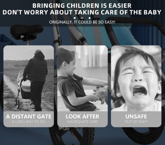 Problem Solver: Eliminate travel concerns with this bike-stroller combo. No need to abandon long travel plans; the integrated baby seat keeps your child within sight, ensuring safety and peace of mind.
