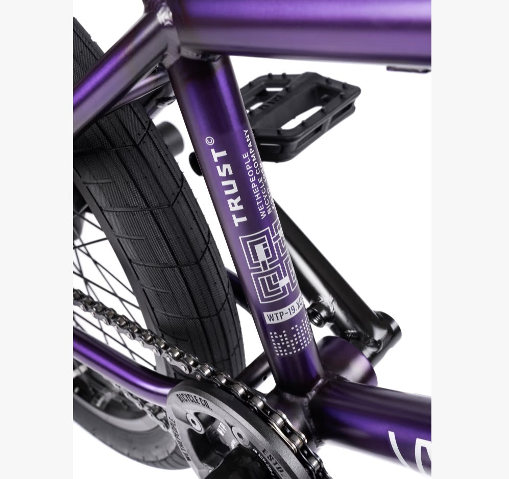 FRAME: WETHEPEOPLE "TRUST" frame, 4130 full crmo, tapered SS & CS, with removable brake pivots & guides, 127mm head tube
