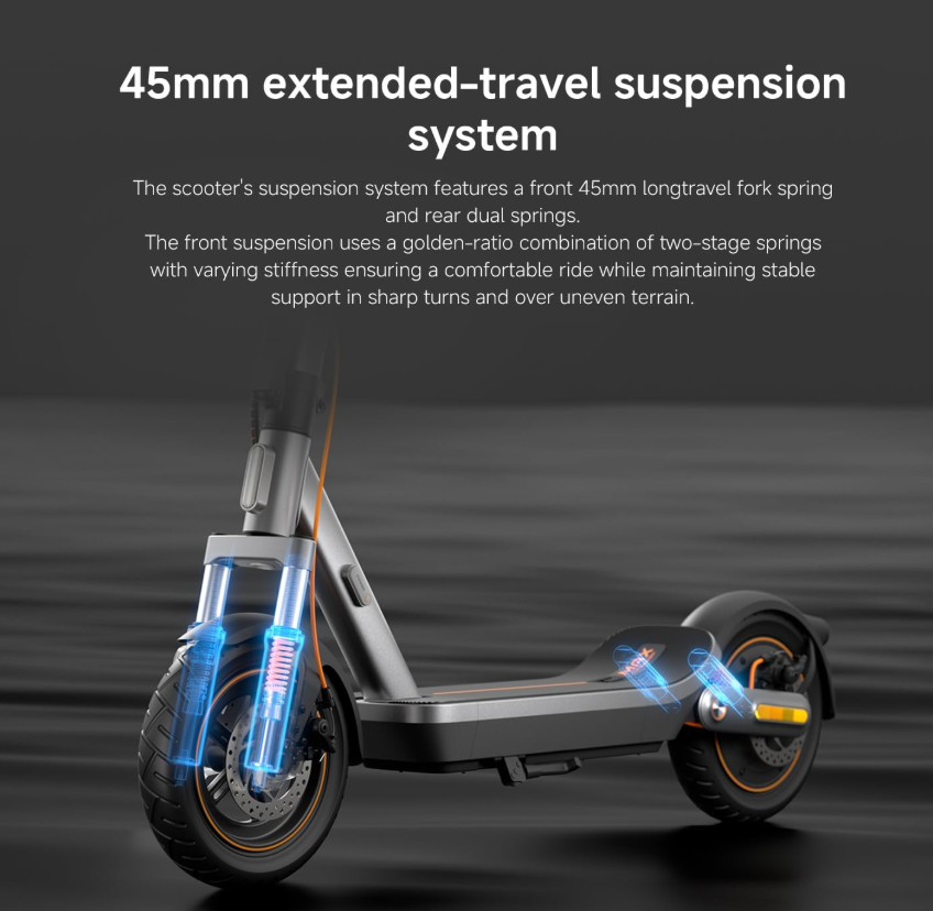 6. 45km maximum range at 25km/h: Measured when there is no wind and at 25±2℃, the scooter is fully charged to ride at a constant speed of 25km/h on a mileage test bench until shutdown, with a load of 75kg±0.5kg. TIRT test data, report number: OTSA1-202501046.