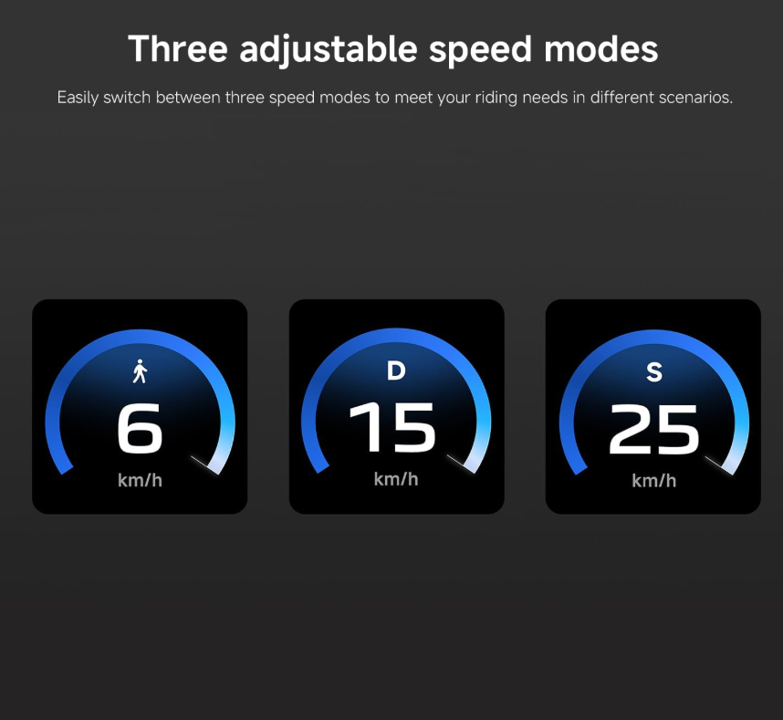 16. Maximum speed of 25km/h: Carrying a load of 75kg, with 40%±3% power, at an ambient temperature of 25±3℃, and a wind speed of ≤3m/s, the scooter accelerated in the auxiliary driving area and maintained maximum speed upon reaching the test area. The maximum speed in the test area was measured with a speedometer. Maximum speed: 25km/h±10%. Data tested by the manufacturer.