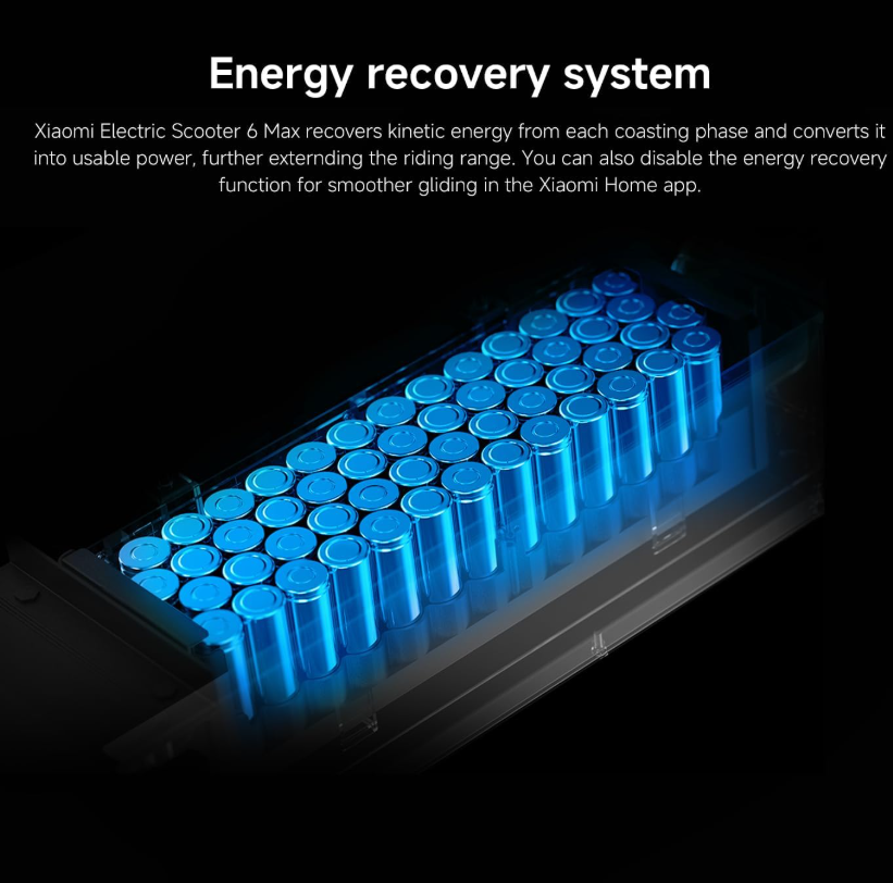 7. Per kilometre power consumption reduced from 7.95Wh to 6.69Wh: Xiaomi Electric Scooter 6 Max has a 10Ah/468Wh battery with a range of 70km at 15km/h, consuming 6.69Wh per kilometre. Xiaomi Electric Scooter 5 Max has a 10.2Ah/477Wh battery with a range of 60km at 15km/h, consuming 7.95Wh per kilometre.
