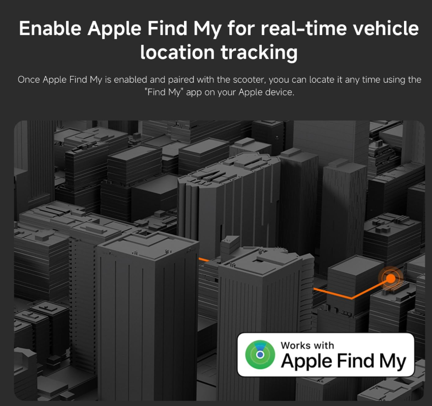17. Apple Find My function: Please enable Apple Find My on the vehicle and pair it with your device in the Find My app. This allows you to locate the vehicle through the Find My app on your iPhone, iPad, or Mac, as well as through the Find Items app on your Apple Watch, reducing the risk of theft. It is recommended to use the latest version of iOS, iPadOS, or macOS for the best experience.