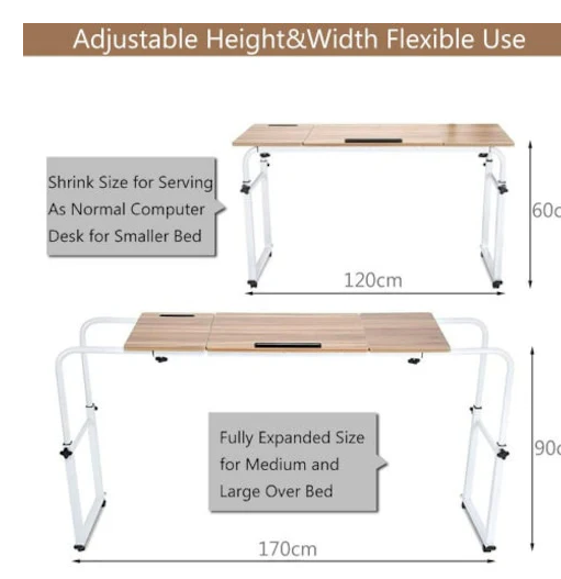 Multi-Purpose Use: Perfect as an over-bed table, laptop workstation, hospital table, study desk, drafting table, or dining surface.