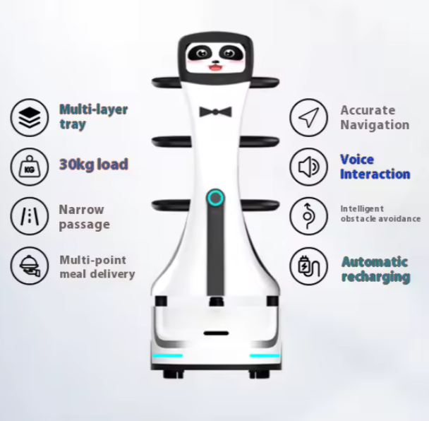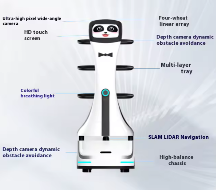 Its sleek design, 10.1-inch display, smart obstacle avoidance (20 ft range), and auto-charging system make it a modern solution that enhances guest satisfaction while reducing staff workload.