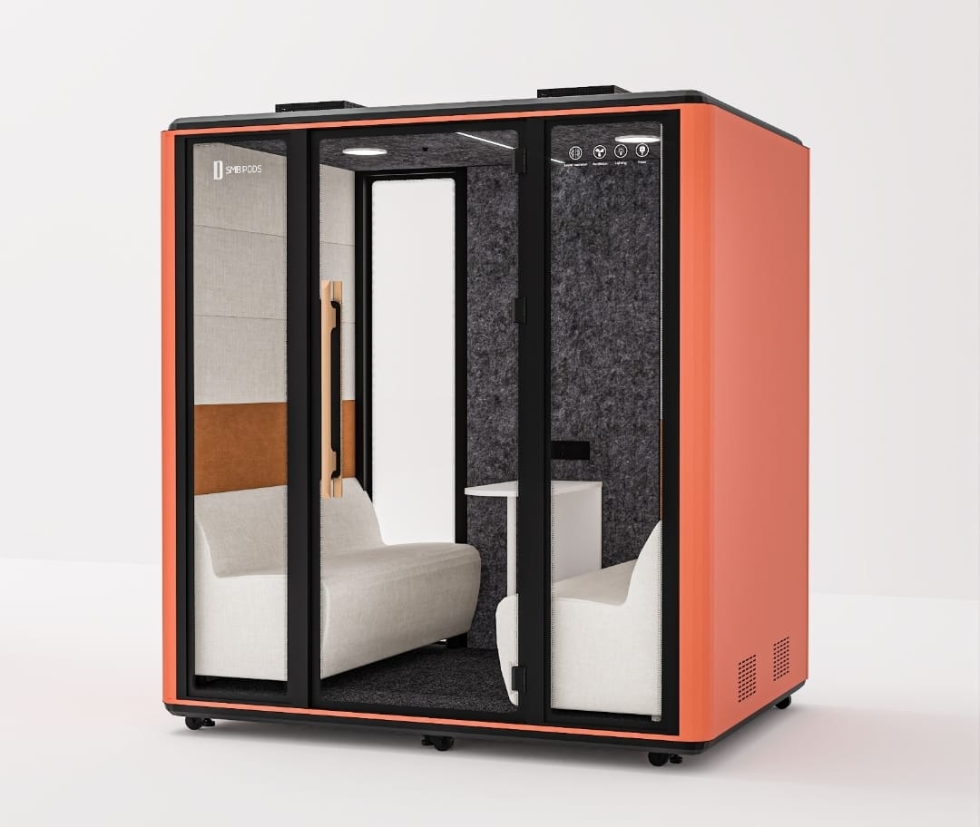 The BIG POD (4-Person Capacity) is a spacious, sound-insulated solution designed for UAE Homes, offices, malls, restaurants, and commercial environments that require quiet, focused collaboration. With up to 28 dB noise reduction, high-density acoustic panels, fresh-air ventilation, and premium interior finishes, it provides a comfortable and professional space for meetings, discussions, or private work—without external distractions.