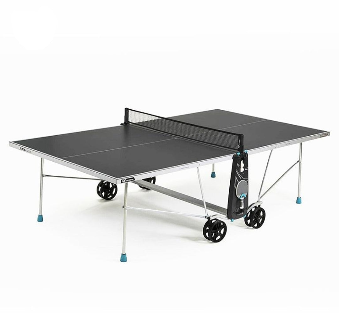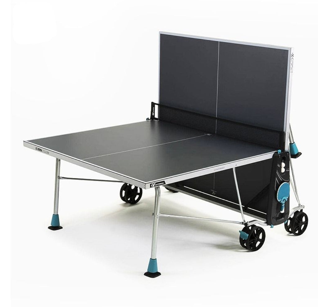 Take your outdoor ping pong to the next level with the Cornilleau 200X. Designed for precision, durability, and versatility, this table suits both beginners and experienced players. Its 5mm resin laminate playing surface, SOFTMAT finish, and solid core construction withstand sun, rain, snow, and heat, while height-adjustable legs and oversized wheels make it easy to move across any terrain. Innovative storage and folding systems ensure convenience, stability, and effortless setup for endless outdoor fun.
