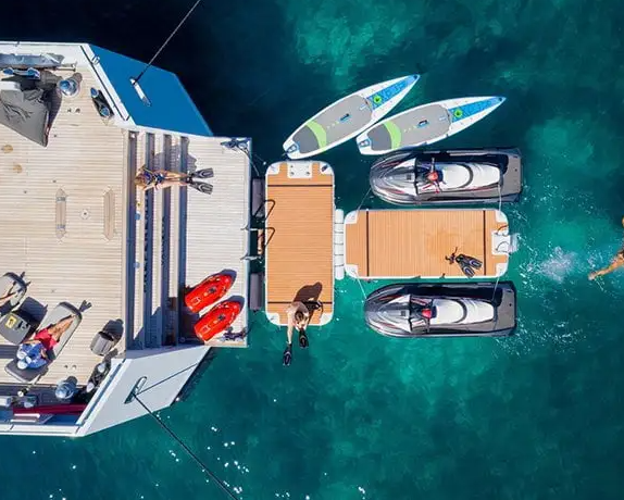 Built for yacht owners, private villa residents, resorts, watersport clubs, and luxury waterfront estates, this heavy-duty floating station provides a strong, stable platform for work, leisure, fitness, and family fun. Whether you’re cleaning your boat, relaxing on the water, hosting guests, or creating a private sun deck, this platform brings versatility and durability to every marine environment.