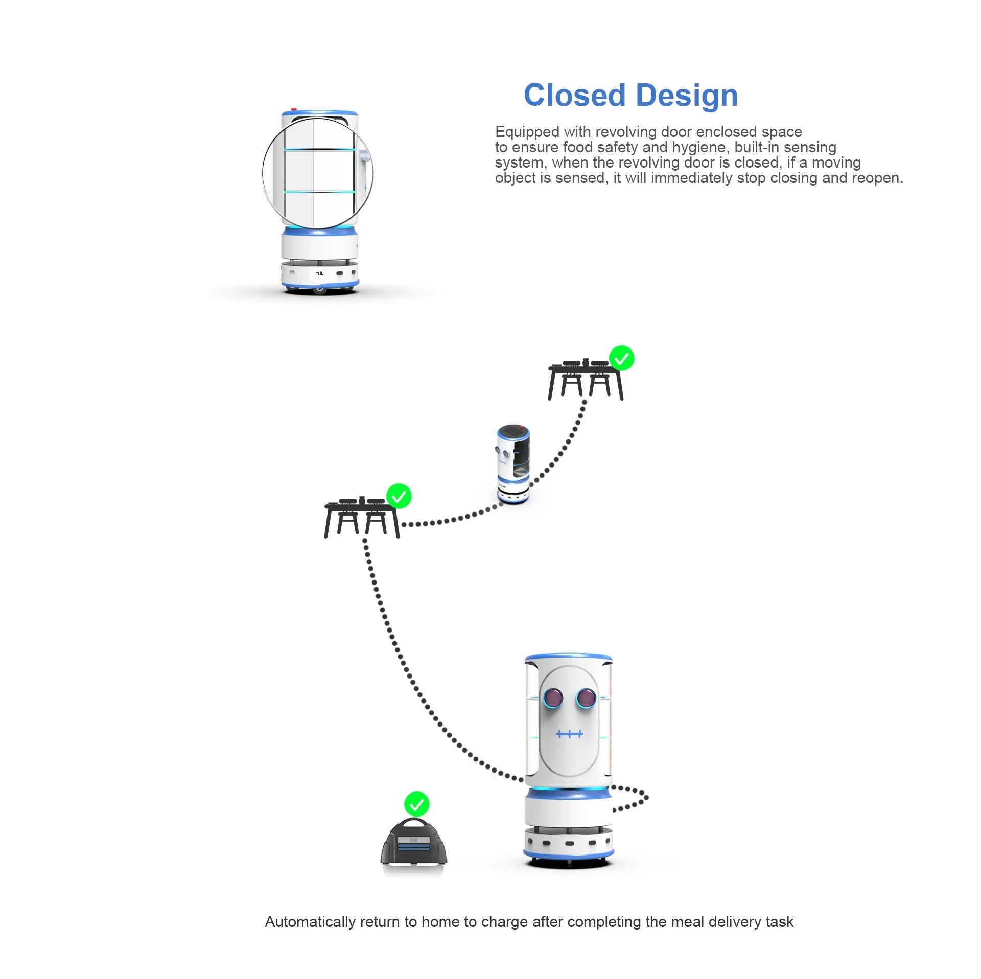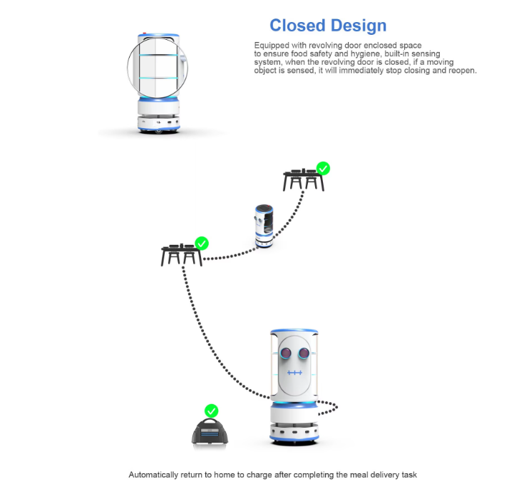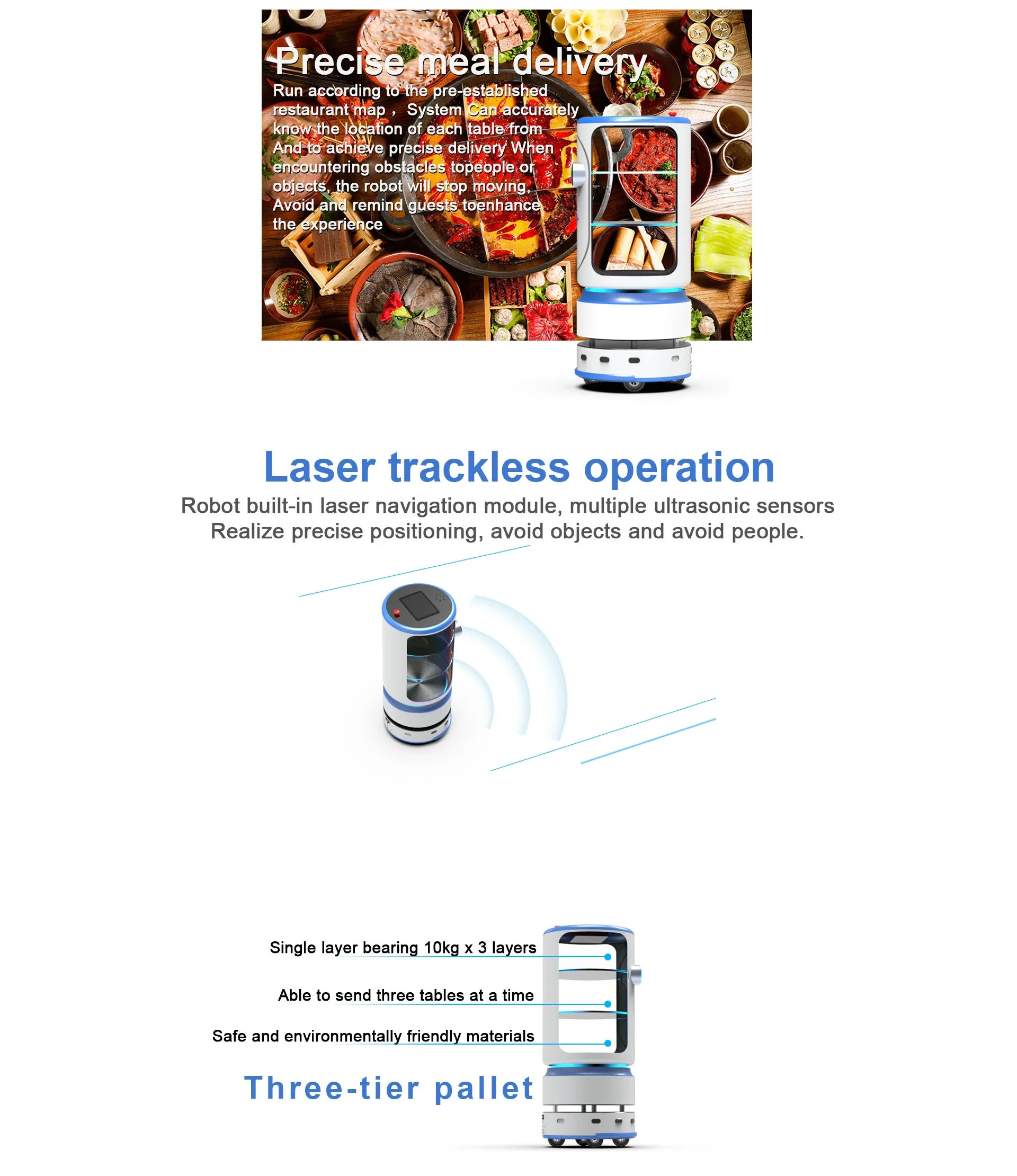 Robot can deliver the food to one table, can also deliver the good to three different tables in one order.