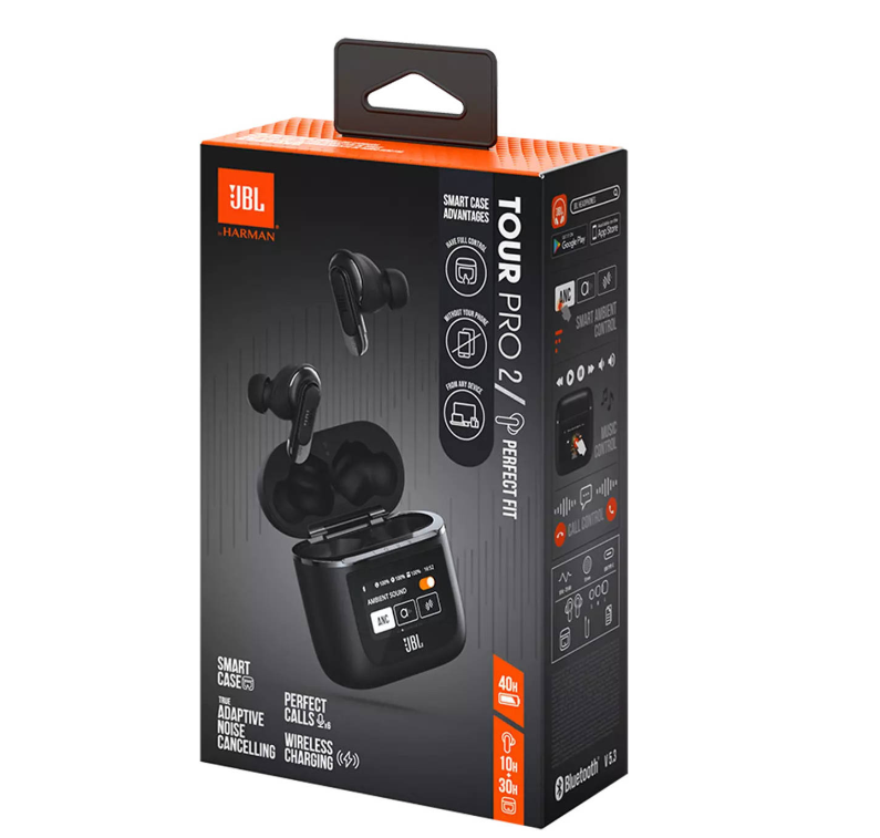 BL Tour Pro 2 True Wireless NC Earbuds, True Adaptive ANC, Immersive JBL Spatial Sound, 6 Mics, BT 5.3 LE Audio, Smart Case with 1.45" Display, Up to 10H Battery Life, Black