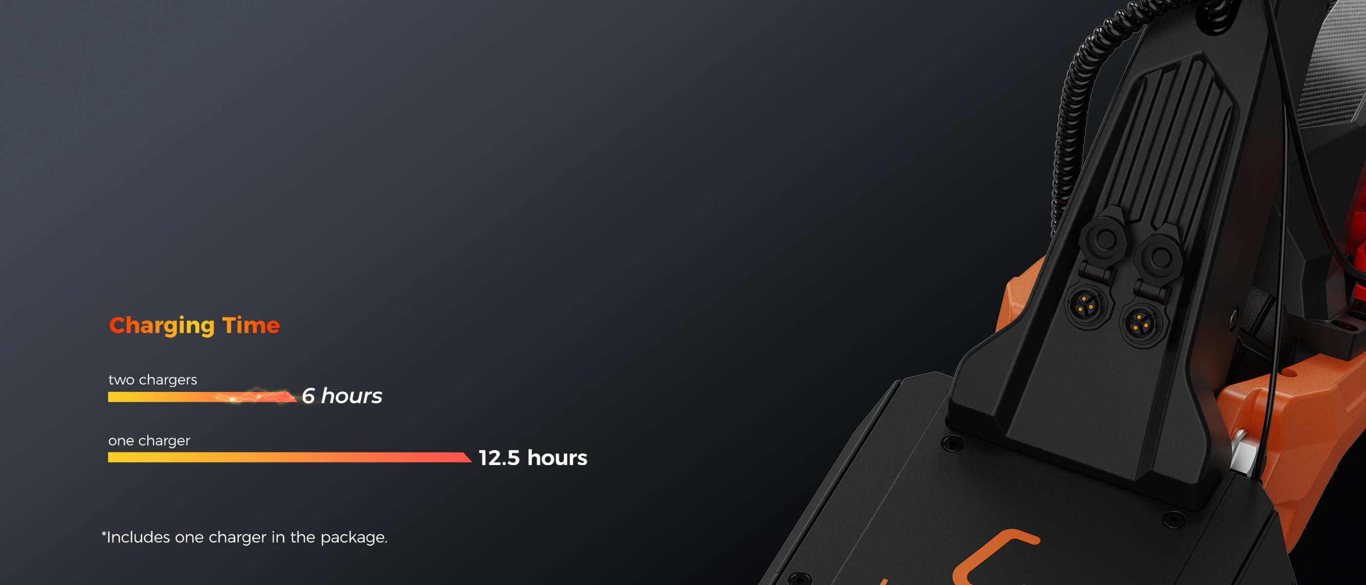 Dual charging ports cut charging time in half.