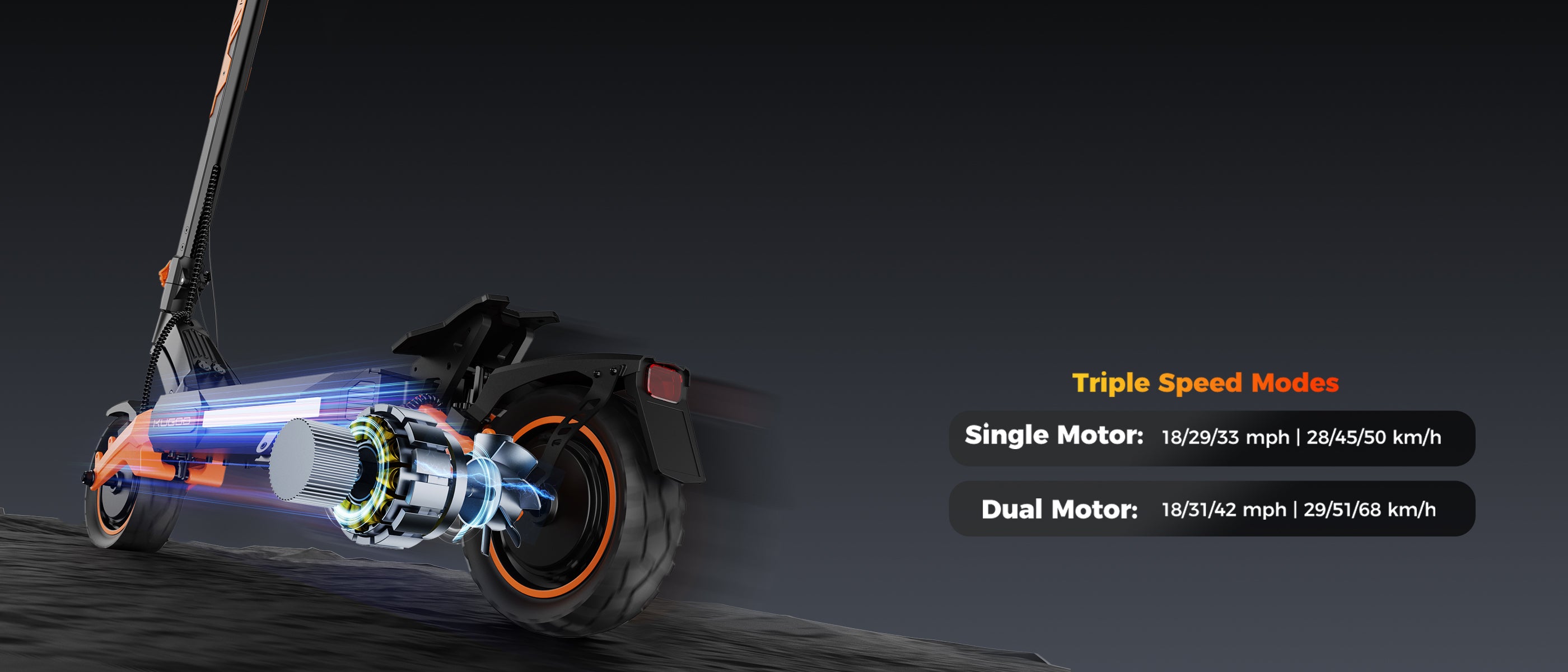 Unleash 42 mph top speed with high-torque dual 1100W motors. Switch between single and dual drive for instant acceleration.