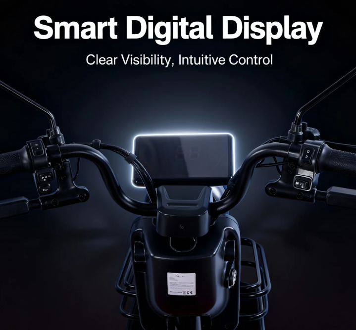 The Kugoo T3 Electric Bike redefines everyday mobility with a perfect blend of stability, performance, and convenience. Its three-wheel cargo-cum-passenger design offers superior balance compared to standard two-wheel bikes, making it ideal for both first-time riders and experienced commuters. Powered by a high-capacity lithium battery, it delivers up to 60 km of smooth cruising on a single charge, reducing the need for frequent recharging.