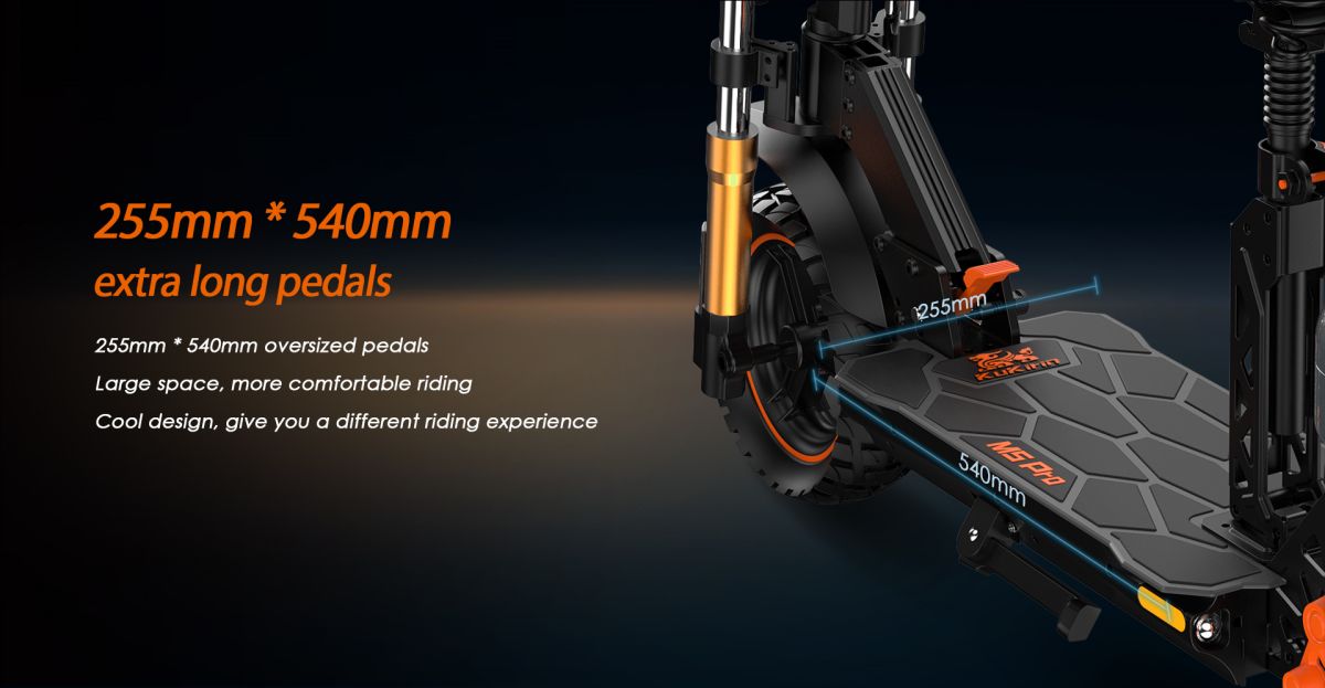 Together with 10'' pneumatic wheels makes the KuKirin M5 Pro one of the best electric scooters for adults.