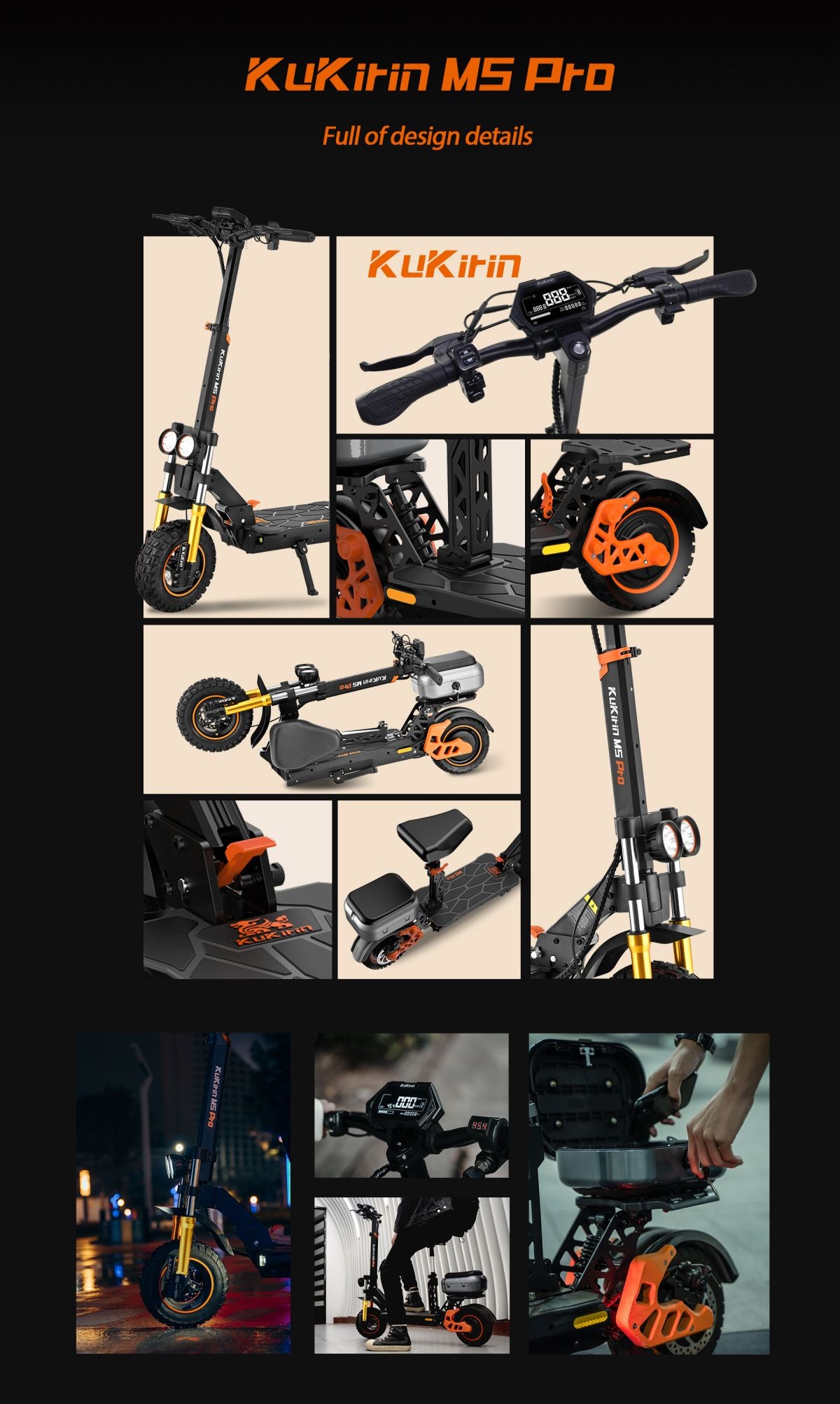 Designed with a 1000W powerful motor and 20Ah large battery, the KuKirin M5 Pro model can easily handle a long trip.