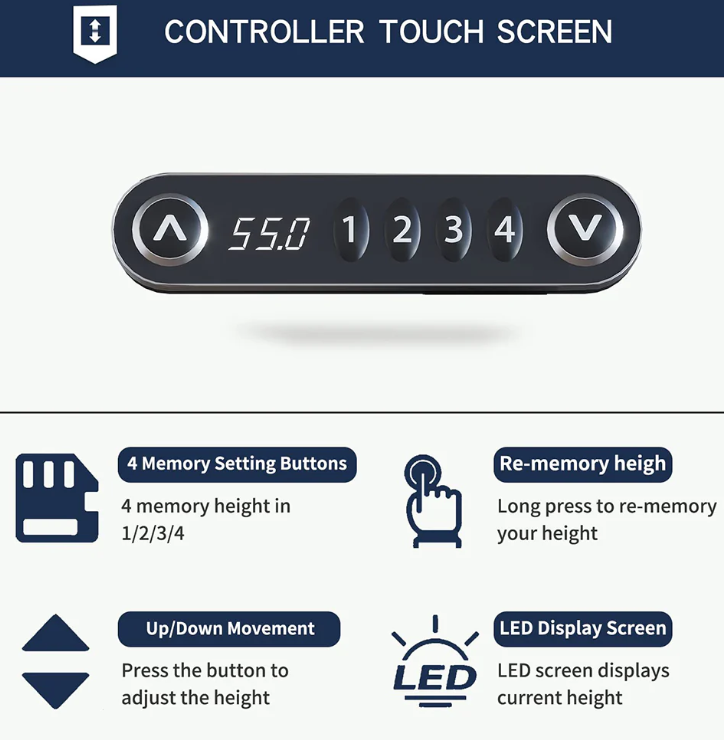 4 Memory Presets: One-touch programmable heights for quick adjustments throughout the day.