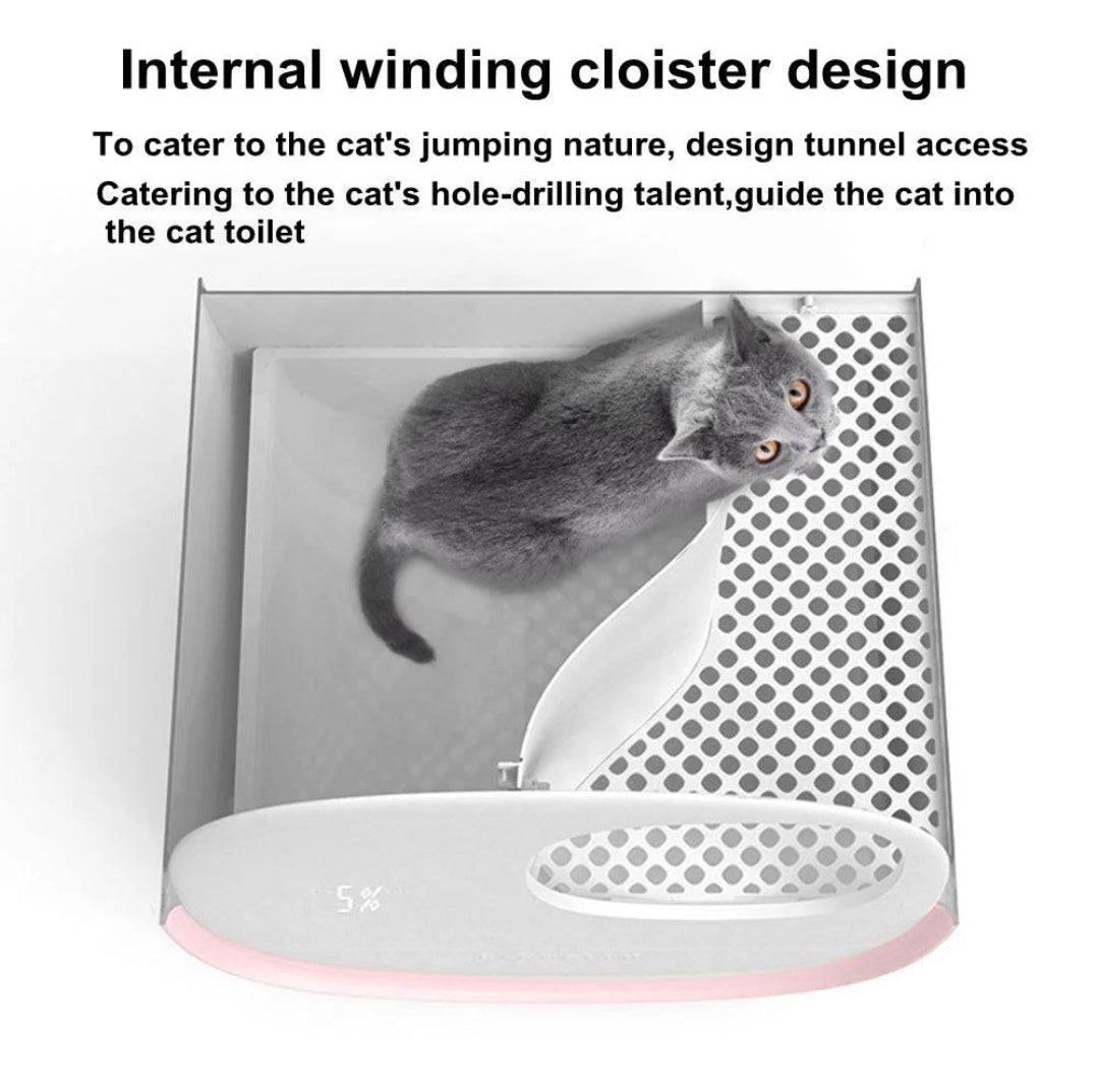 【Smart Cat Litter Box】: Enclosed design, protect cat privacy, specially designed for cats enclosed space. Drawer design, easy to change sand and shovel excrement, convenient and quick.Internal winding corridor design.
