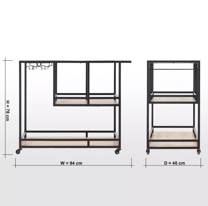 Add functionality and style to your dining or entertaining space with the Modern Serving Trolley, featuring multiple shelves, storage slots, and glassware hooks. Designed for easy mobility and elegant organization, it’s perfect for both home and professional settings.