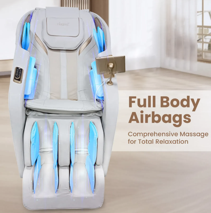 Experience next-level relaxation with the Nourest Nexo SL-Track Massage Chair, engineered for deep-tissue precision and all-around comfort. Combining 3D roller technology, Zero Gravity recline, and 18 automatic programs, it delivers a personalized, spa-quality massage at home. Designed with Bluetooth speakers, wireless charging, and lumbar heat therapy, the Nexo blends advanced wellness with modern convenience.