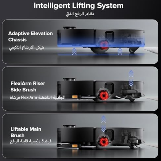 Saros 10 elevates the chassis up to 0.39 inches (10mm) on high-pile carpets, reducing suction port blockages from long fibers.