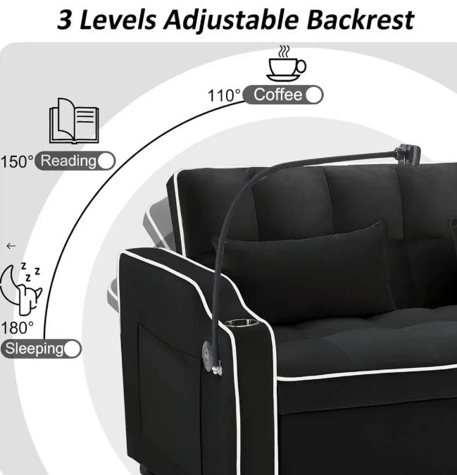 3-in-1 Convertible Design – Functions as a loveseat, sleeper, and full sofa bed