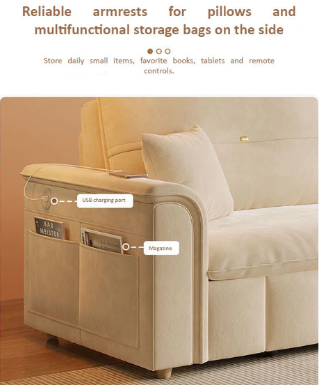 Experience the perfect blend of functionality, comfort, and modern design with the Sofa Bed with Storage and USB Port. Built for convenience, it seamlessly transitions from a stylish sofa to a comfortable bed while offering smart storage solutions and charging functionality.