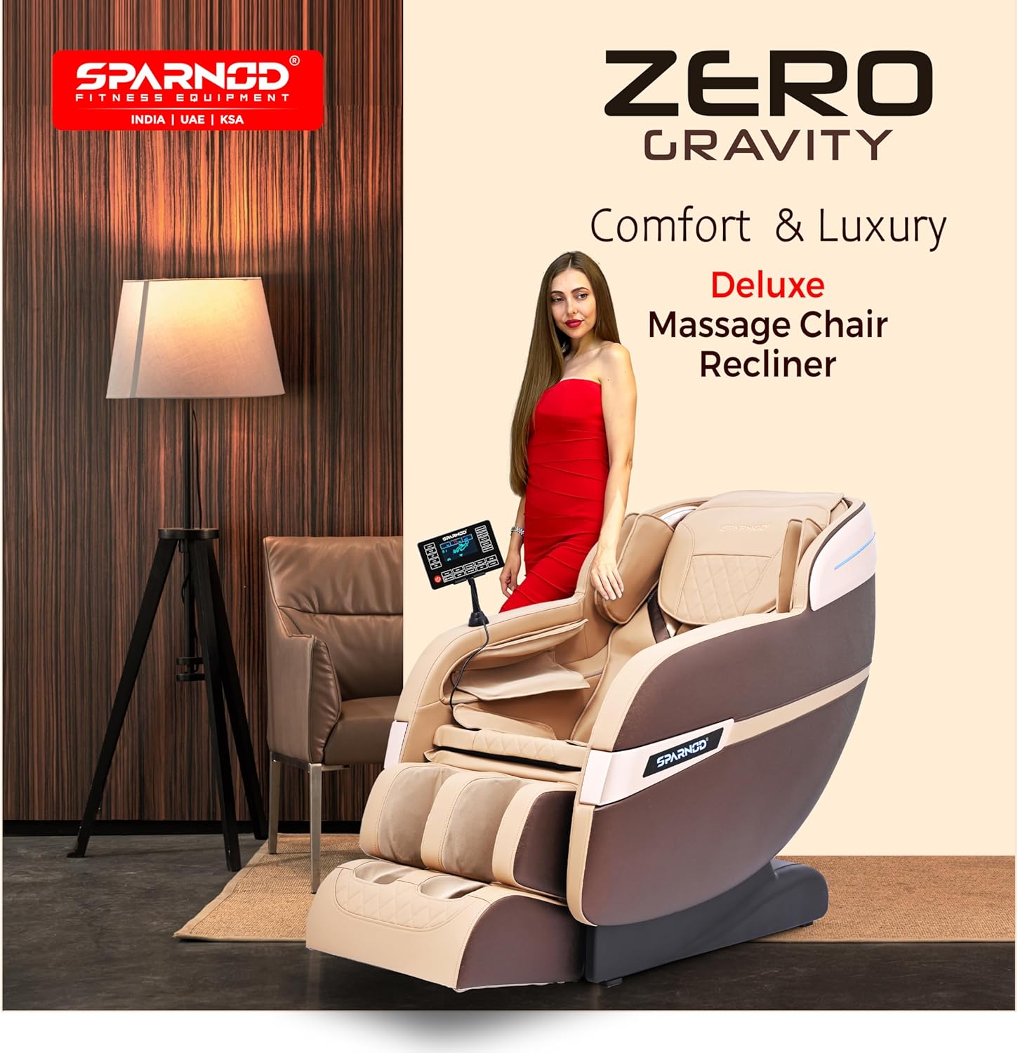 Experience spa-level comfort at home with the Sparnod Fitness Deluxe Massage Chair, designed for full-body rejuvenation and daily relaxation. Featuring Zero Gravity recline, 22 massage balls, 22 airbags, and soothing heat therapy, it delivers a customized massage that melts away stress and restores energy.
