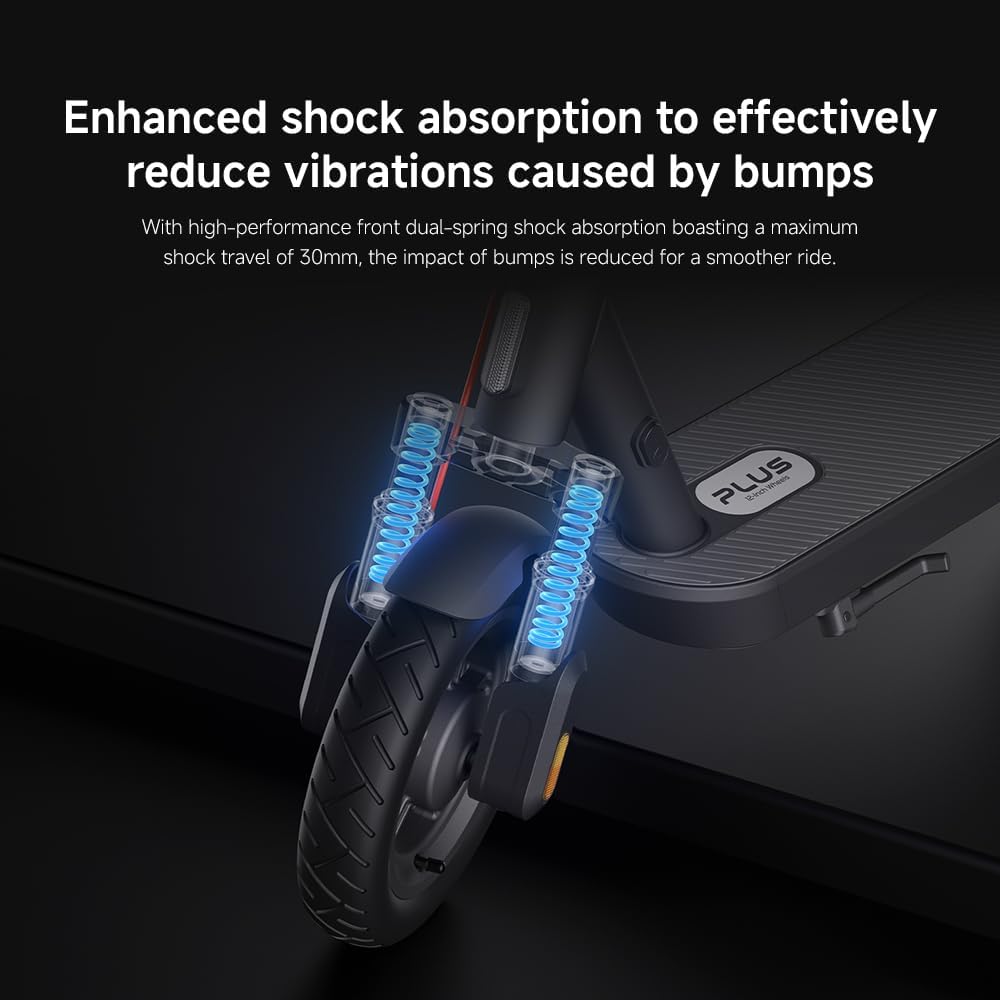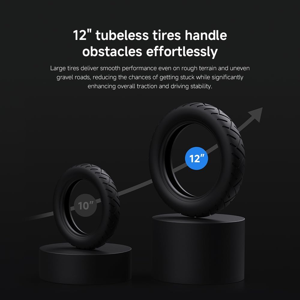 Enhanced Comfort: The scooter is equipped with front dual-spring shock absorbers and large 12-inch tubeless tires to effectively absorb impacts and provide a smoother ride on uneven terrain.