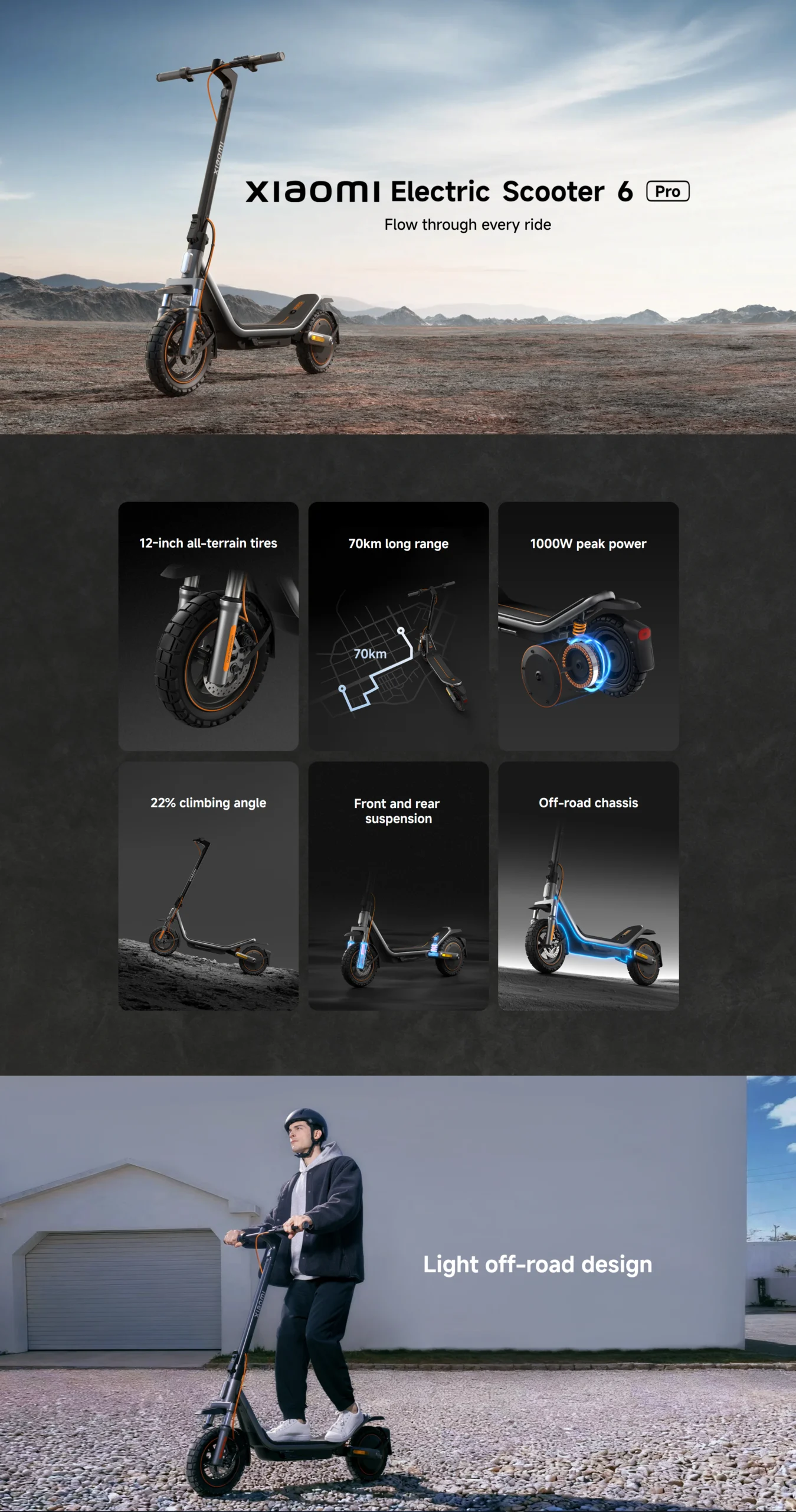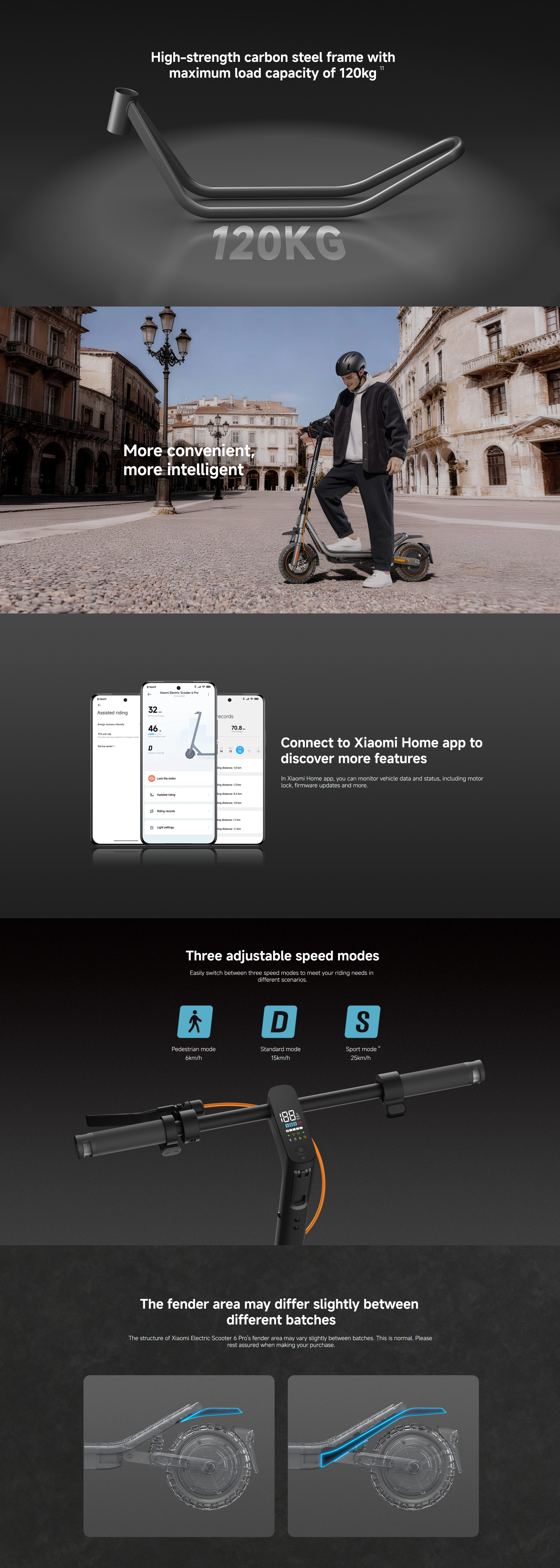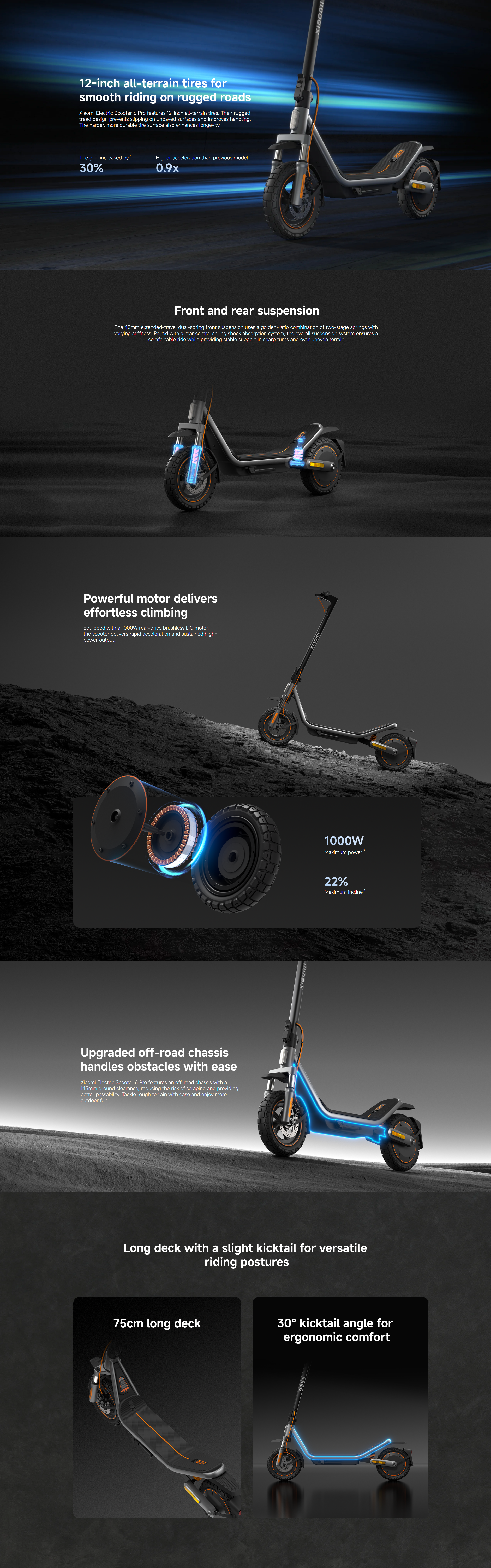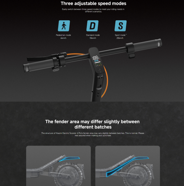 The Xiaomi Electric Scooter 6 Pro is a high-performance electric commuter scooter that combines long range, strong motor performance, and smart connectivity for an exceptional riding experience. Built for both city streets and light off-road paths, this model enhances everyday mobility with a balance of power and control.
